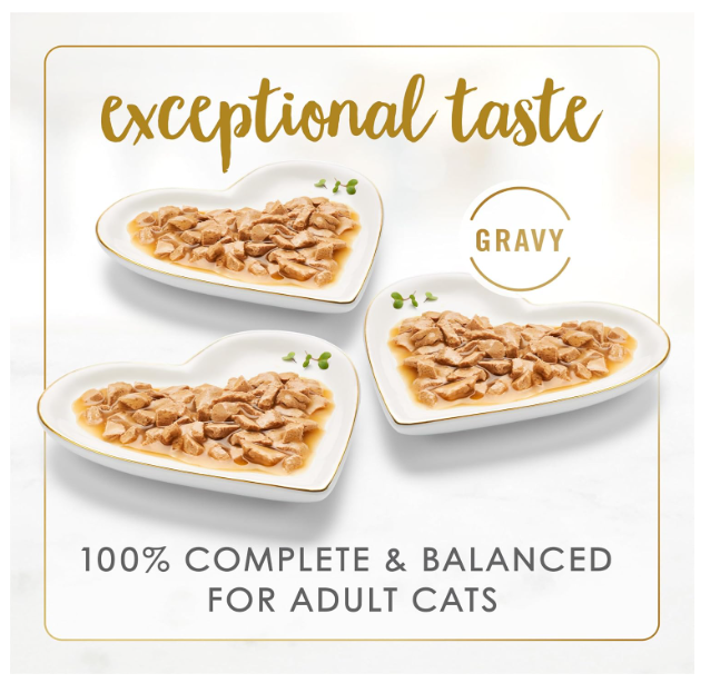 - Cat food with gravy, made without artificial colors or preservatives